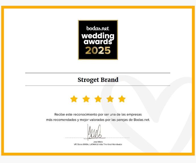 Hemos ganado el premio Bodas.net Wedding Awards 2025 por nuestro servicio excelente en la Comunidad Valenciana.